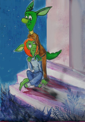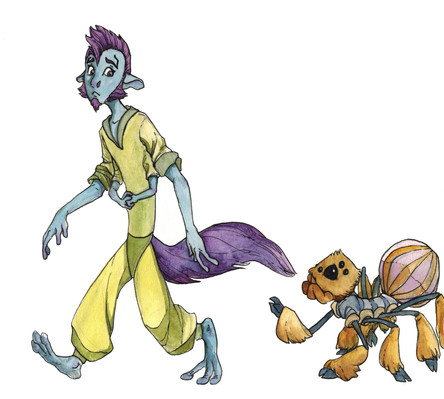 Stork and Radarr from Storm Hawks...it goes along with my concept for the first Flash Forward.Not much has changed...I figured Stork would be 20 (maybe 21) by then...and Radarr is just bigger. I've never drawn eaither of them before and my God..they are hard.