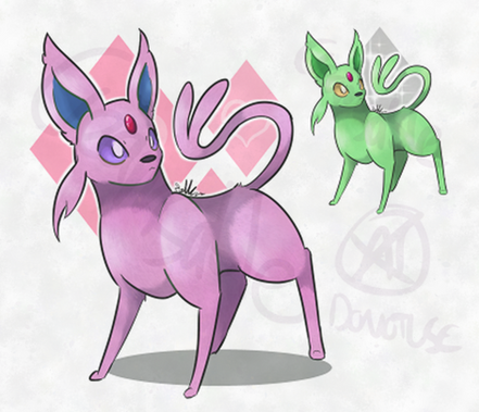 Picked espeon just because it's probably the eeveelution I'm not super familiar with drawing and because I thought it'd make the best contrast considering just how catlike it in particular looks.