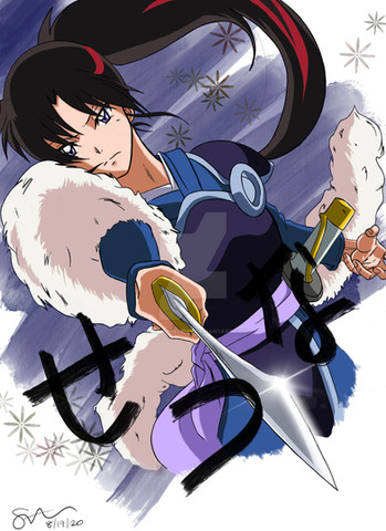 She’d have a European styled sword (another gift from Sesshomaru) that she wields MASTERFULLY, but otherwise, it’s just a regular sword. It’s shape and size might lead people to think it’s some magical blade that she’s managed to either purify, or once again, “tame” which would further the image of this ultra-powerful priestess.