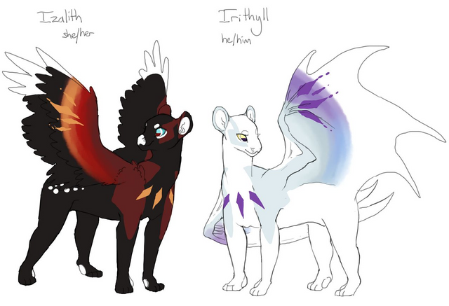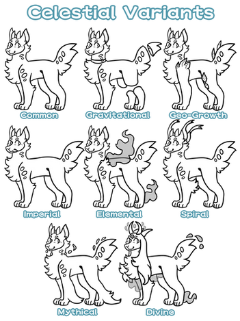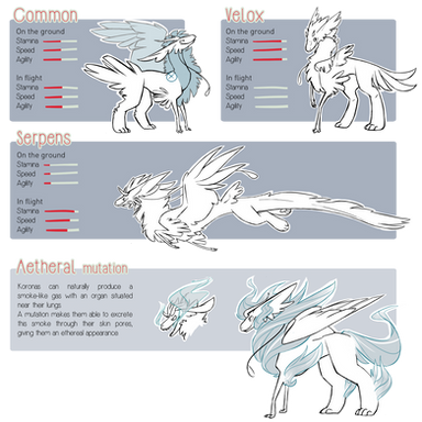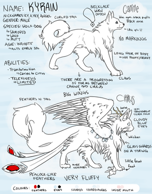 Here are all of the reference sheets I have for my new closed species, Kyriens, so far!The reason why there all have the species name is because I made them separately, but I didn't want to post each one.