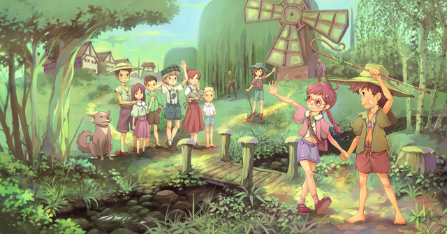 Even though it is for a musical album it looks like it was from a beautiful RPG , which I would love to play if it existed Very well done! I love the bright colours and the happy characters.
