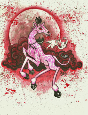 Pencil and colored pencil; colored with watercolor, plus dodge tool in Gimp.