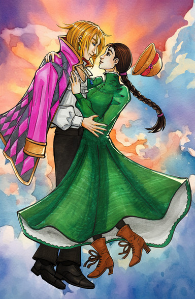 #anime #calcifer #fanart #ghibli #howl #jacket #love #romance #romantic #sophie #valentinesday #ghiblistudio #ghiblifanart