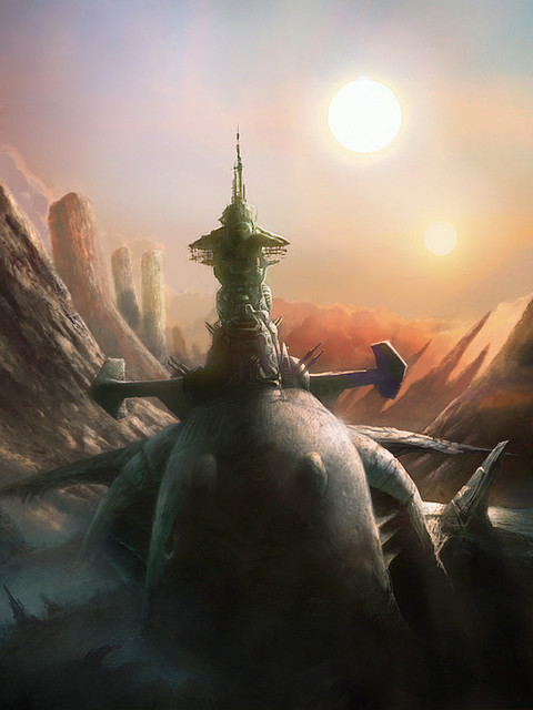 J'adore la perspective qui donne une impression de gigantisme les couleurs sont magnifiques, le design Γ mi-chemin entre fantasy et SF est splendide!