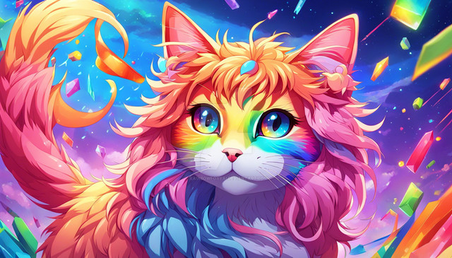 #cat #rainbow #animalart #digitalart #animal #feline #artfight #procreate #fanart #anime #originalcharacter #warrior #magic #warriorcats #kitty #characterdesign #wallpaper
