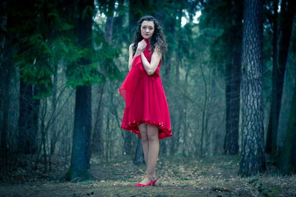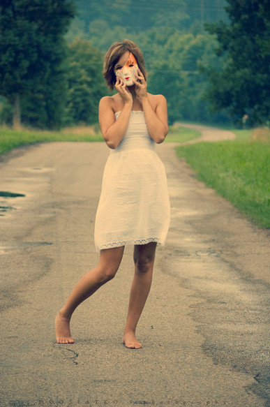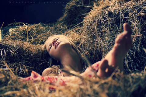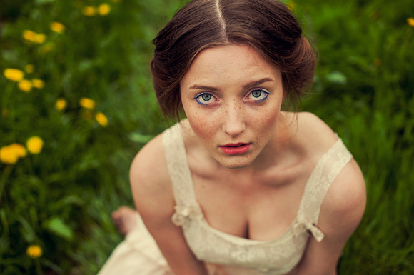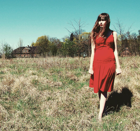 model: Ola.i poranna rosa plus nieniebieskie chmurne niebo.