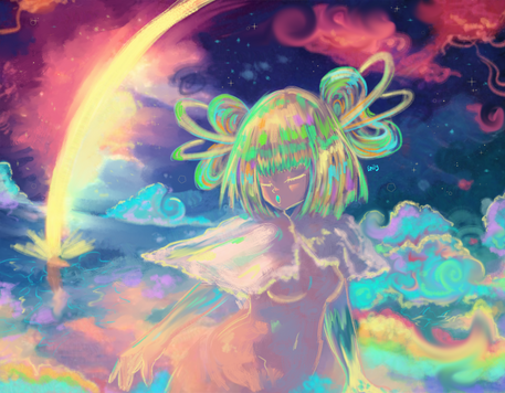 #anime #colorful #cute #girl #gold #goldfish #hair #kawaii #manga #oc #organge #pretty #red #scenery #sky #animegirl