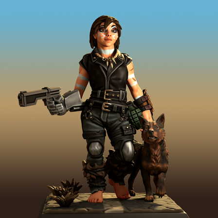 A fun idea: this is what Cat looked like as a little girl. Even at a young age, she was a serious cosplayer. Her character is a mix between her two favourite video game hero: Slayer Boy and Princess Samia.(And who the hell sells first person shooter/underword kingdom destroyer games to the younger audience? Ok, minotaurs are different, but still) So, if the princess and Boy had a child, it would look like this. Great crossover! And the real Cat is pretty close to said character. (Just because her adoptive parents are also cosplayers, of course...) The guns are plastic ones.The dog's name is Dig. He is Aunt Sabela's dog. (Aunt Sabela is a family friend and the parents' former colleague, she is not even a minotaur.) The red spots are not part of his fur, but were painted on by Cat. The paint is theoretically easy to wash off. With the spots, Dig looks like the Primordial Beast, another video game character. It is interesting that Dig the dog is at least fifty years old. How???