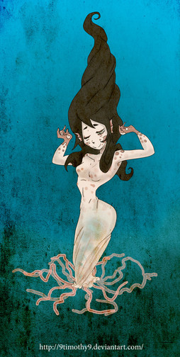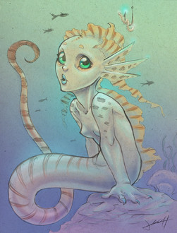 I love this very much. Always a fan of deepsea characters. I love the eye and those .. those .. little sticky symbiont fish. I can't remember what they're called all of a sudden. :<