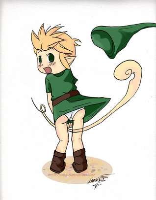 ahahahah!! cleverly peering from behind link, chu chu spies his moose knuckle.