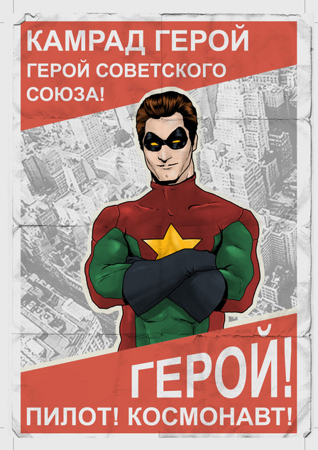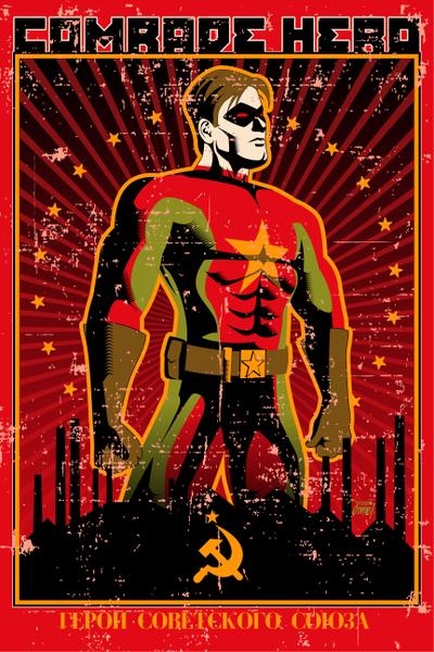 I basically knew it was only a matter of time before I'd draw this fan art... Comrade Hero is a project created by New Zealander and it has all kinds of good aims including literacy.He's created a bunch of characters and a world where corporates instead of nations control the world (so it's pretty much like things are now), but I could not resist going for a soviet union propaganda poster look.
