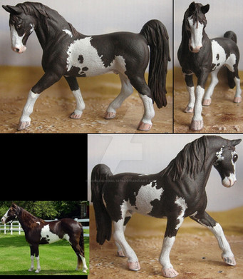 This horse was originally supposed to be much lighter but like most of the stuff I do it turned into something else. Still, I think this is one of my best yet, and my first time doing a bay.And oh noes! Subliminal messages in his freeze brand!