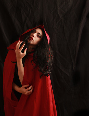 I really like this shot it has a kind of red riding hood feel to it with a hint of innocence but still risqué enough to be definitely seductive. I really love the contrast of the colors as well your hair and the red your beautiful porcelain skin and lipstick it's all intoxicatingly beautiful to say the least.