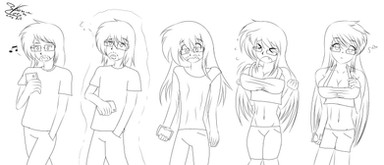 First off the guy the one from the first part in Multimorph p1 panel 1 is seen talking to a japanese guy in uniform(maybe his behaviour would be almost opposite to his female counterpart from multimorph p3 last panel) the one talking about guys stuff,then suddenly they changed or as you can say morph into girls but this time make the guy change into the one from Multimorph p1 panel 6 with the same clothes same tshirt and jeans but with a flower on centre on her tshirt and no lipsticks and no eyeshadow,and the japanese guy should be changed into the girl from multimorph p3 last panel.and it ends with them talking again but this time different from their previous forms and girl like.