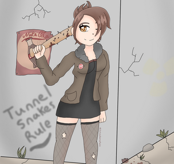 Totally amazing! The background really captures the idea of an abandoned place as well. The character itself looks badass yet adorable~
