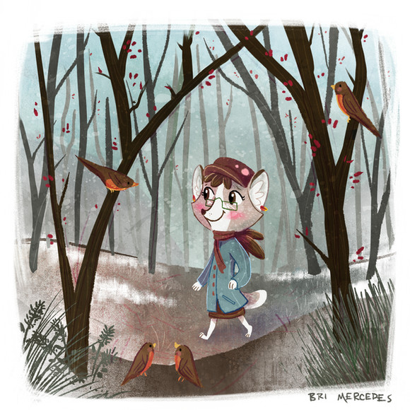 This is a very lovely wintry depiction. I like the pleasant sense of peacefulness that this piece exudes - which is particularly well-felt in the lady's contented expression. I like the texturing work on this illustration, and all the subtle detailing you put into the woman's coat and the bark on the trees. This is rather pretty. Β