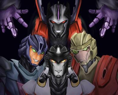 D'awww! Brawl's broken face plates make me want to hug him, and Onslaught seems so sinister because you can't see his optics! And for Vortex this all seems just a big party.