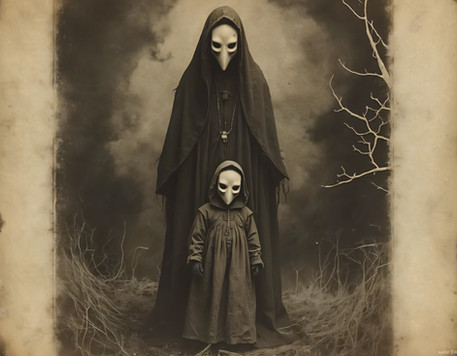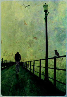 Oh, I do love the overall appearance of this work. The little girl, as adorable as she is, looks kind of out of place, almost like she was just "stickered" into the background. The crow man and the background are excellently put together, but I think that the child looks a bit out place.