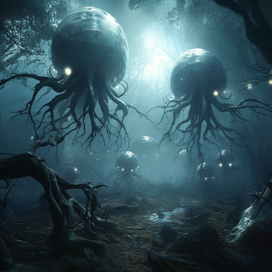 bottomless swamp, plasma babble creature, lightning ball ghost, epic, masterpiece, cinematic --v 5