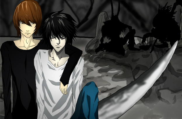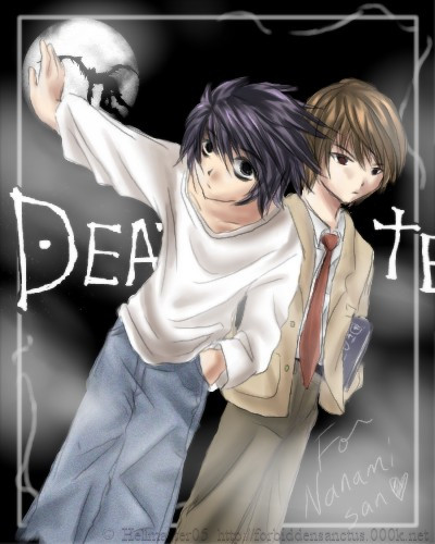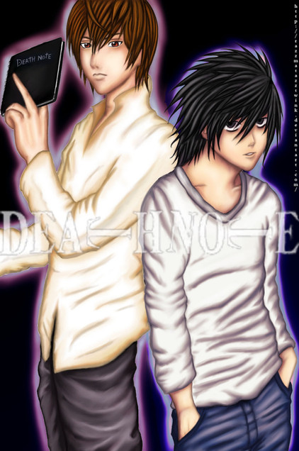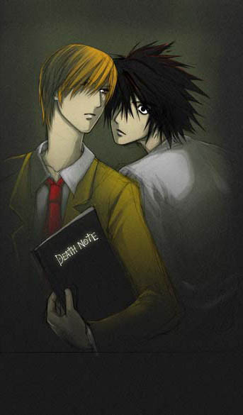 This art was suppose to represent who die first in death note, but yeah...we all know now... that L dies. well Light dies more uglier than L. I actually felt disgust when Light died. T_T shame shame....