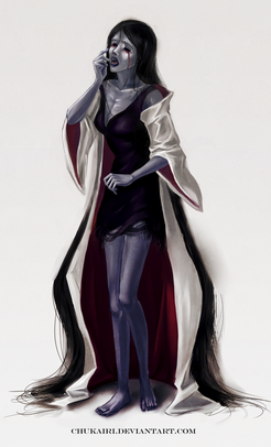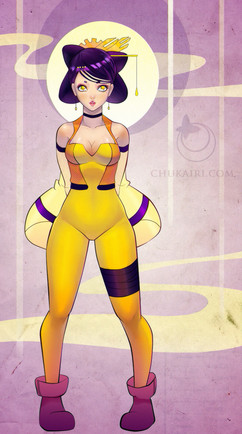 When I first sketched this on paper in 2010, I wanted to throw passion in it like saying "Have your revenge, come and get me...if you can." Smirking with cunning intent. As I colored it the saying went to "nothing is scarier than a woman scorn." Like she's evil because people made her that way.