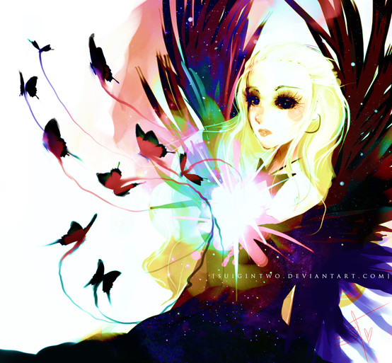 #happy #love #red #ribbon #romance #sunlight #transcend #butterflies #butterfly #femalewoman #girl #whitehair #ribbontied