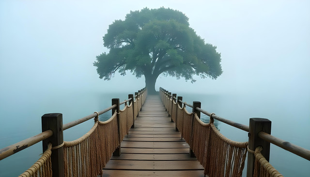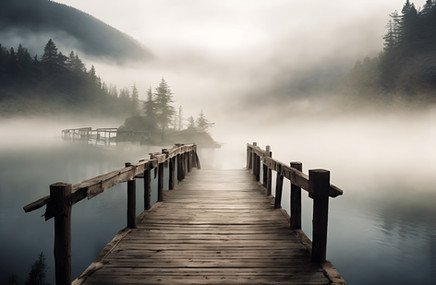 #atmospheric #bridge #fog #foggy #moody #nature #photoshop #reflections #symmetric #tree #water #moodyscenery #photomanipulation