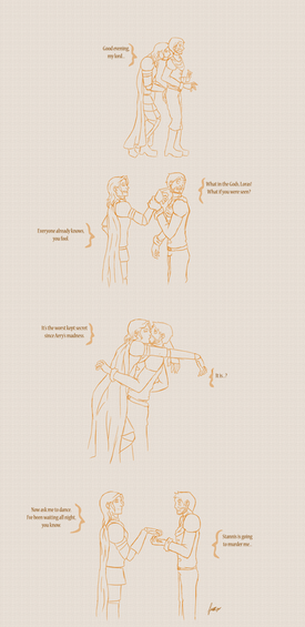 Yay for good guys Phoebus and John! Both for not giving into rumors about Beasty and telling off disrespectful jerks. This made me so happy. Plus Esme blushing is adorable.