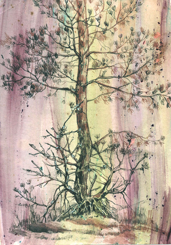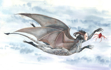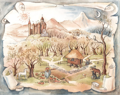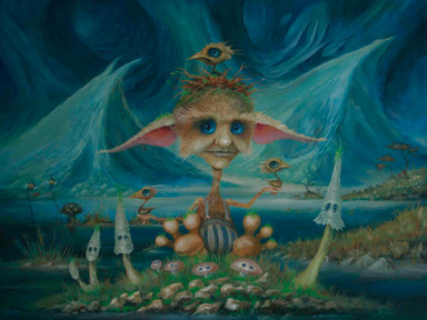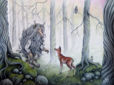 Forest spirits. Russian evil: wood goblin, kikimora, water sprite, and famously one-eyed. Gouache.Лесные духи. Русская нечисть: леший, кикимора, водяной и лихо. Гуашь.