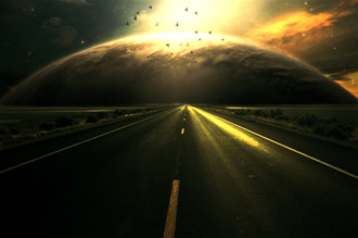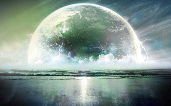 Looks like it's a metallic earth rising from the sea.