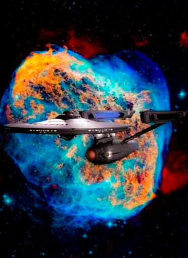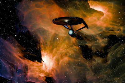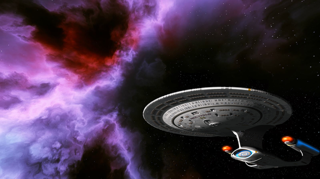 Galaxy class starship: startreksoundtracks.comBackground by BlenderAdept