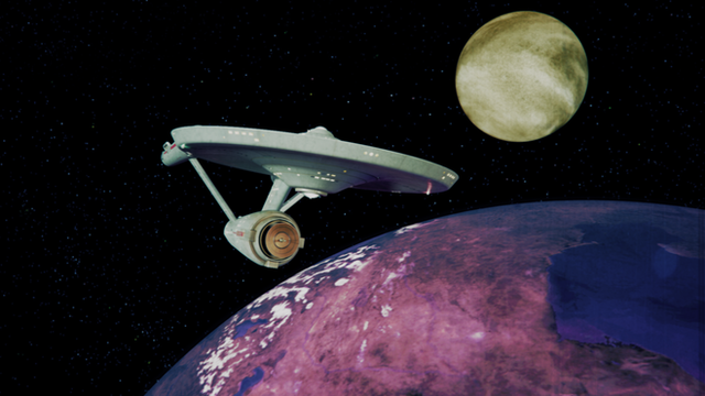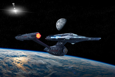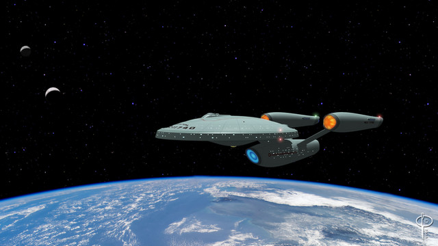 Beautiful juxtaposition of starship, stars, and a lovely blue planet. Only thing better would be to see the real thing in person.