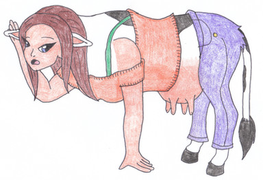 It is weard. but still that is what a anothro cow girl is. the most weard ones are the ones that can use. He has one of them with three rows of brests and a udder all swollen with milk.