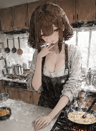 #digitalart #anime #characterdesign #animegirl #animedrawing #animeboy #apron #bodyexpansion #cooking #genderbender #giantess #kitchen #mature #nsfw #tf #tg #giganticbreast #giganticass