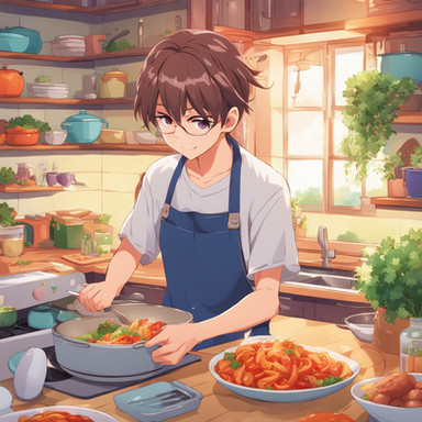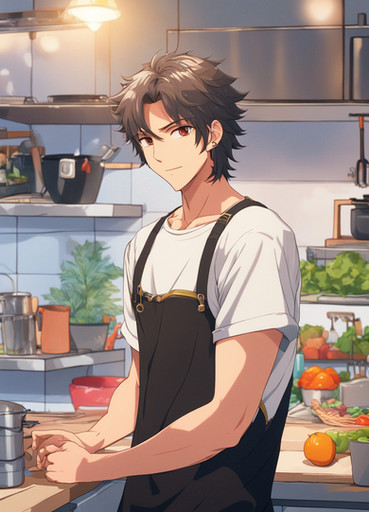 #digitalart #anime #animedrawing #animeboy #animegirl #characterdesign #apron #breastexpansion #cook #cooking #genderbender #giantess #kitchen #tf #tg