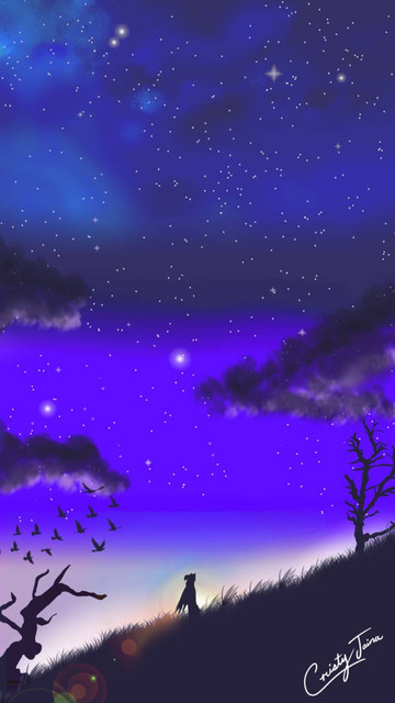 All the colors blend so nicely and those little stars are perfectly placed and done. The tree really adds a nice flow to the drawing and the way you made the sky on top of it a little darker looks so great! Fantastic work Leaf!