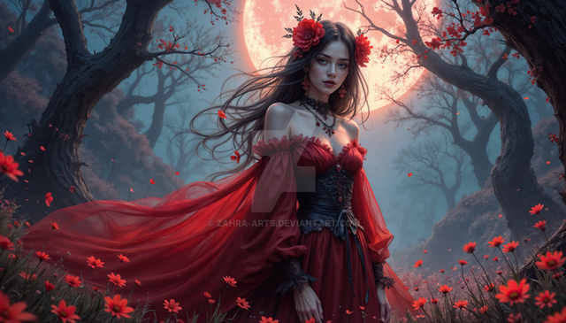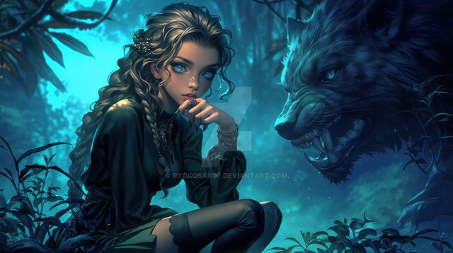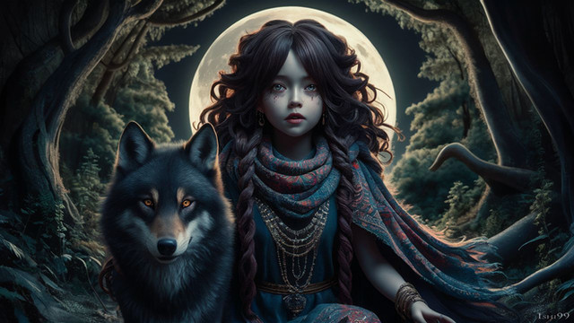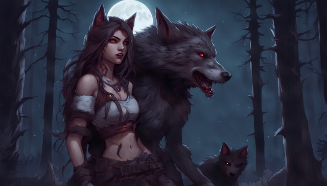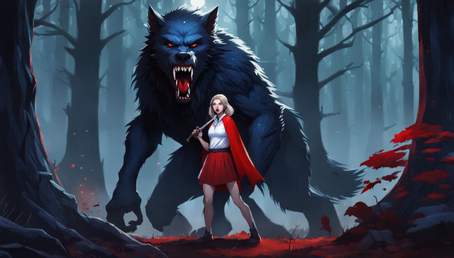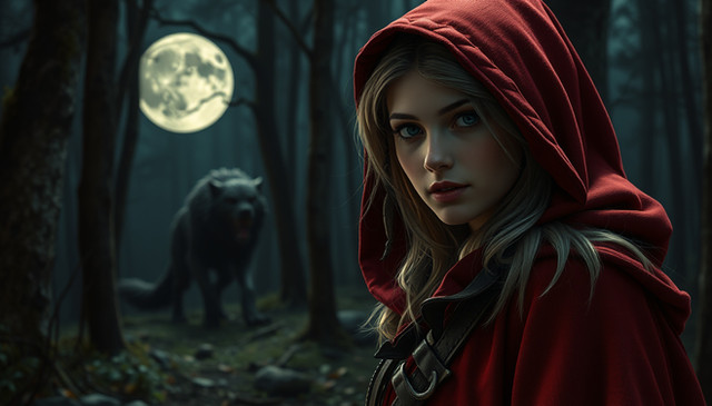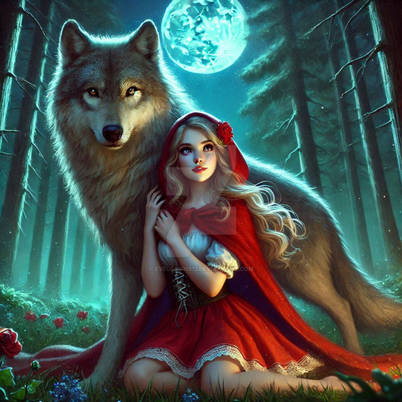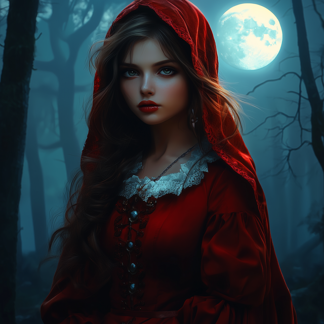 #magic #ai #dreamup #digitalart #cartoon #fantasycharacter #wallpaper #forest #fanart #characterdesign #portrait #fullmoon #littleredridinghood #werewolf #ai_art