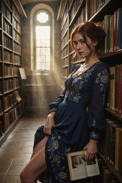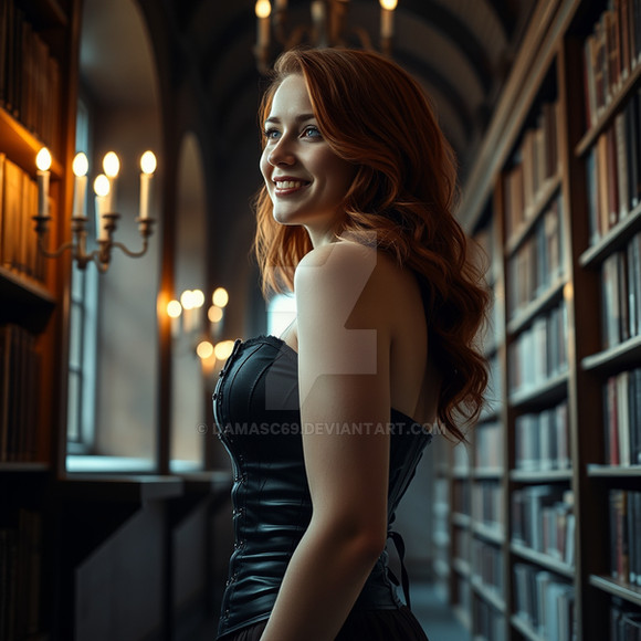 #portrait #photography #beauty #magic #redhair #stockphotography #ai #dreamup #digitalart #wallpaper #glamour #portraitphotography #portraitgirl #naturallight #harrypotter #books #beautifulgirl #hermionegranger #library #magicalgirl #ai_art