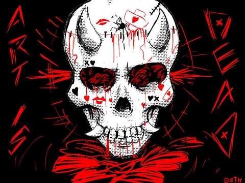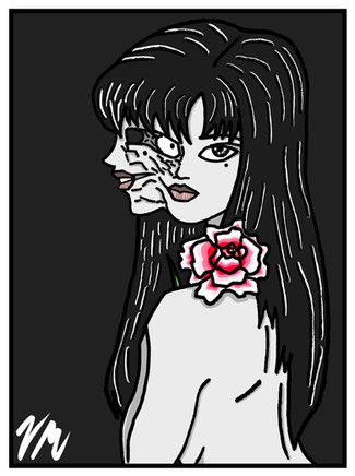 #black_and_white #coffin #mirror #roses #macabre_art #skeleton #original_art