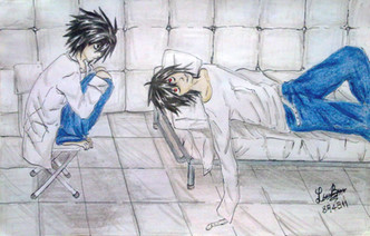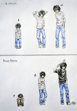 With that said.. I used to think of Beyond being probably different of L at first -like having brown hair, other clothes- and after meeting L he has a radical change and start with the fixation. Though, I never remember to draw it or I get distracted.