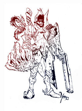 J'ai créé le line, et il a fait vivre cette image avec ces couleurs de folie.. il a vraiment rendu l'effet sombre et macabre du personnage. (CE mec pète le SCORE TToTT )