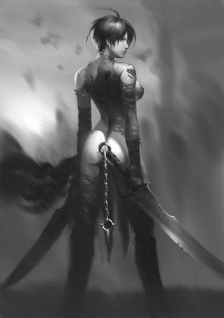 exelent!! j'aime beaucoup l'impression de mouvement et les couleurts sombres qui font ressortir les belles jambes du perso! ^^