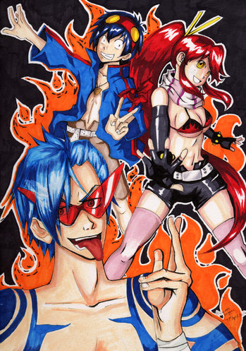 Gurren Lagann is one of the best animes I have ever watched. This picture is really pretty. You're great with Copic Markers. I need to practice my skill with them.
