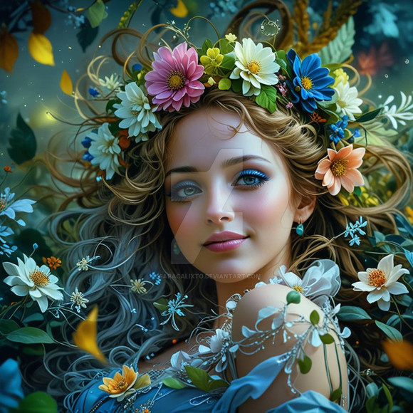 #ai #dreamup #blondehair #dress #fairy #fantasyart #fantasycharacter #fantasycreature #fey #flowers #flowersandplants #greendress #womanbeautiful #ai_art