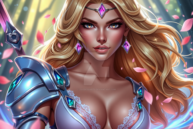 #digitalart #fanart #characterdesign #portrait #beauty #videogamefanart #warrior #magic #fantasyart #fantasycharacter #characterillustration #ai #dreamup #cartoon #digitalpainting #drama #adoptable #princess #sword #warriorwoman #anime #ai_art