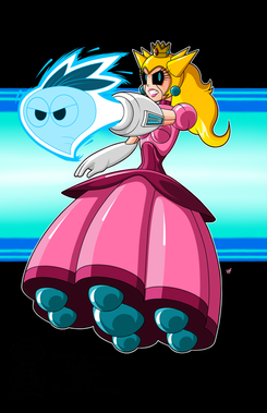 While it is incredibly obvious of who she is, thanks to the tech of the Wonder Mask (which scrambles photos and messes with people's facial recognition when they see her) Wonder Princess can go fighting evil in familiar clothes, and look pretty while doing so! Her Shroom Gauntlets have the power of Super Mushrooms, amplifying punches to 10000 times her strength!