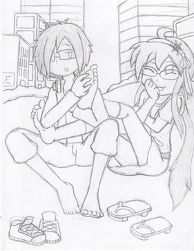 XD Couldn't help but notice how funny and cute this pic is. I really like the character design and style of your drawing. Feet is one of the most difficult anatomies to draw. I'm still learning how to draw hands and feet. But have noticed that I could never find enough references on how to draw feet for some strange reason. But I always find plenty of references on how to draw hands in bookstores. Not sure what is up with that, but it's something that I do take notice lately.