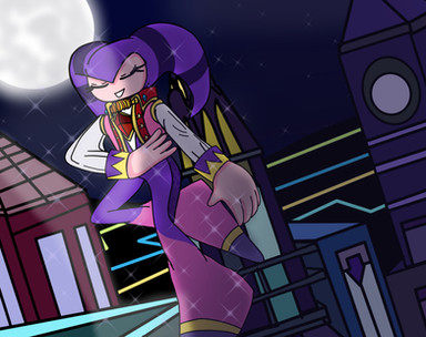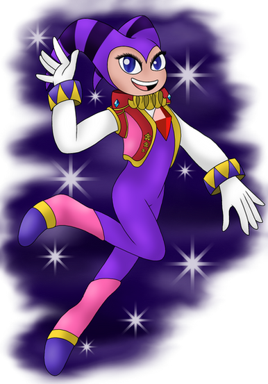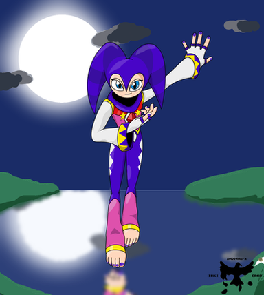 Why yes, that is the dream entity, NiGHTS, playing the invisible flute, and baring his (... er, her... um, well I'm honestly not sure, but in anyΒ case...) nice big feet!I decided to use the more recent appearance, and, I admit it did feel a little weird, since it's the first time I really tried out such an unusual character. Though now that I see the finished result, heh I wouldn't mind dreaming about this...