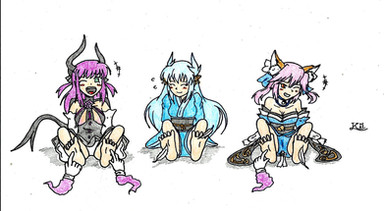 Commissioned by !Aah, now someone else has taken it upon themselves to tickle the girls of Fate, brandishing the Command Seal and asking them to... hold still?