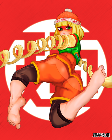 Still, as the poster girl for Mintendo Noodle House, I can see she was quite a natural for the photoshoot! Look at those defined arches! The firm form of the ball! The strength and posture of her heels! This is no doubt due to the rigors of training in her fighting style, to strengthen the body from head to toe.